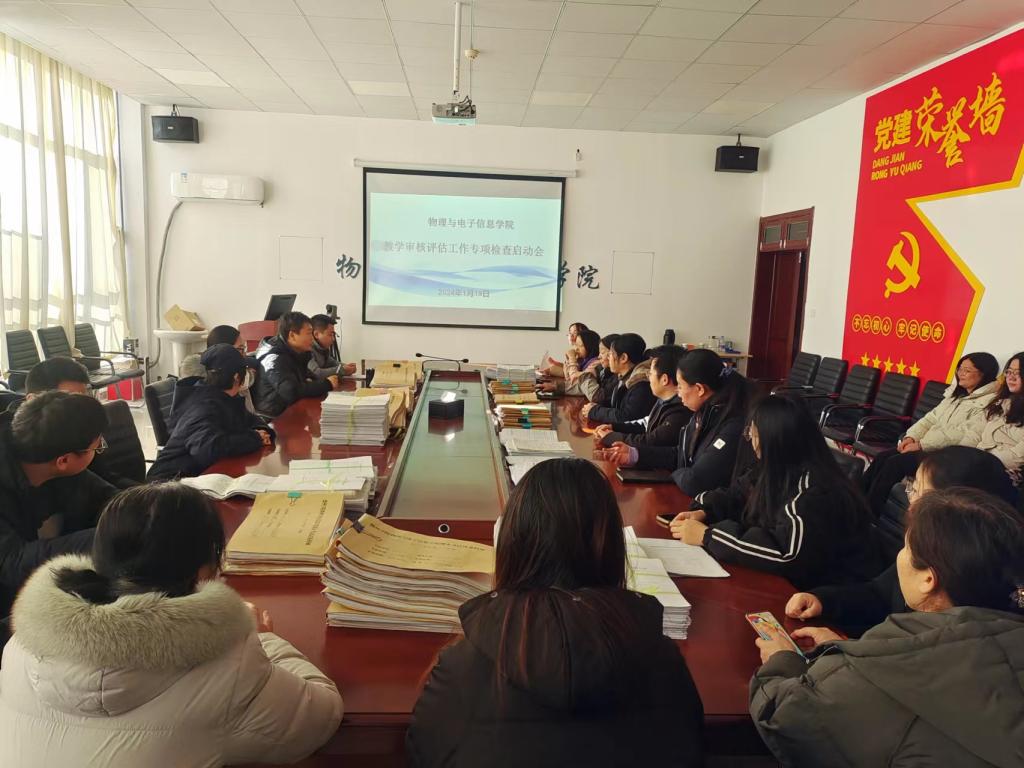 1月19日下午物电学院在启智楼0365召开“365上市公司教学审核评估工作专项检查启动会”。会上,学院负责人传达了学校审核评估工作精神,强调了评估工作的重要性和紧迫性,并对本次专项检查工作提出具体要求,教学副院长根据学校专项检查发现的问题进行了深入分析、确定了整改措施;各专业负责人明确了各项材料整改验收标准;查漏补缺,不留死角。会后,老师们分组讨论材料整理的细节并领取了理论课和实践课等考核材料。