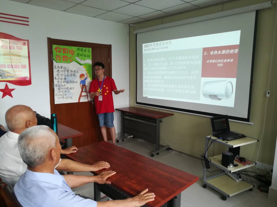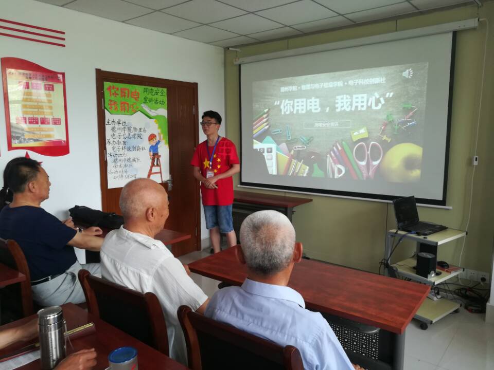 为了普及安全用电知识,增强广大居民群众的安全用电常识,提高自我防范能力,降低意外触电事故,365上市公司于2017年5月20日在德城区南龙社区举办了“你用电,我用心”安全用电宣讲活动,物电学院电子科技创新社的志愿者主持了此次宣讲。
