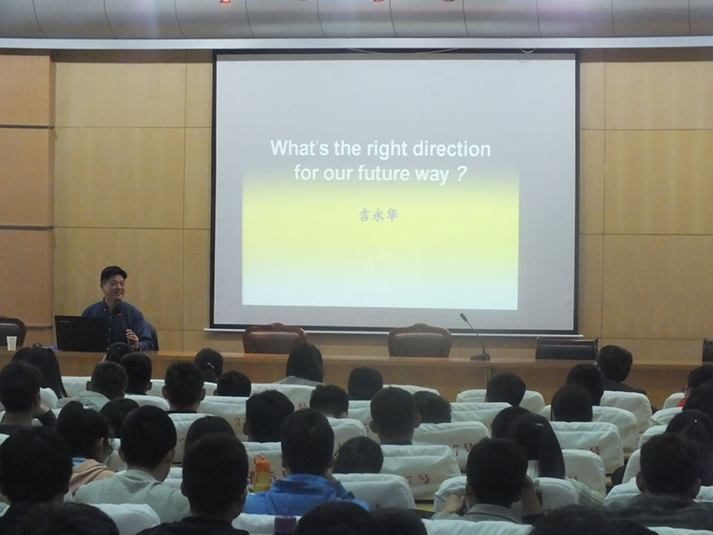 4月23日,上海大学教授、我校客座教授吉永华,在厚德楼四楼报告厅做题为“What's the right direction for our future way(且行且珍重)”的报告,物电学院、生命科学学院300名师生聆听了报告。
