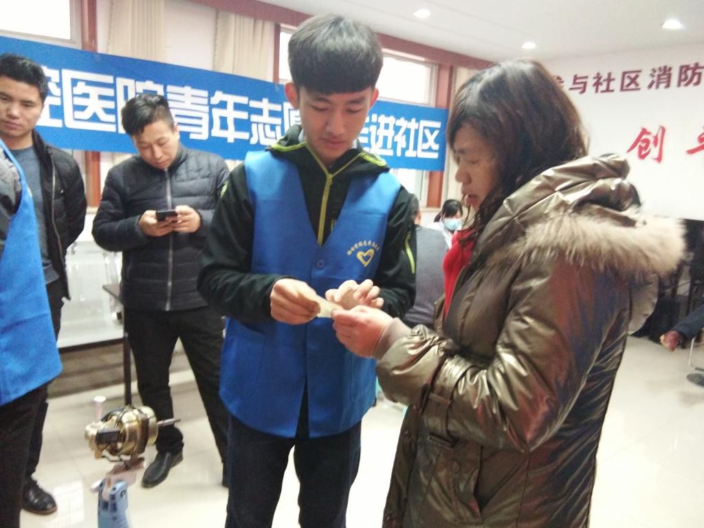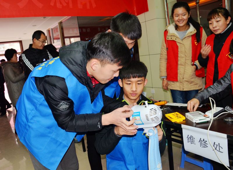 仪式结束,我院志愿者在八里庄社区开展了义务维修活动。维修范围包括电风扇、收音机、耳机、插排等小电器。活动一开始就吸引很多居民前来询问,现场气氛活跃,维修人员运用所学专业知识认真检查,细心为居民解释损坏原因,得到了居民的一致好评。