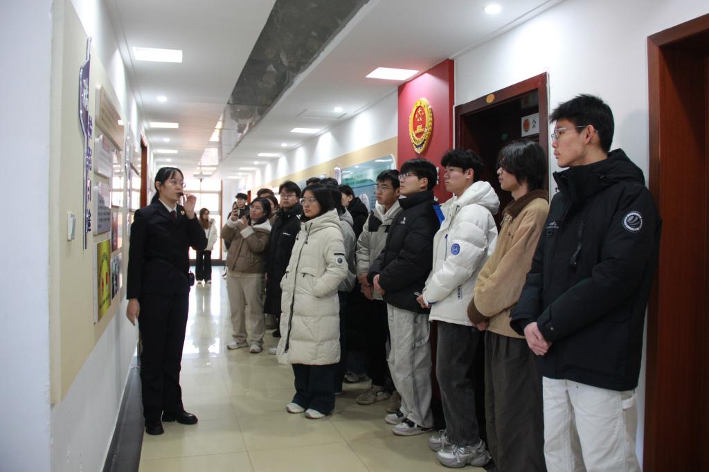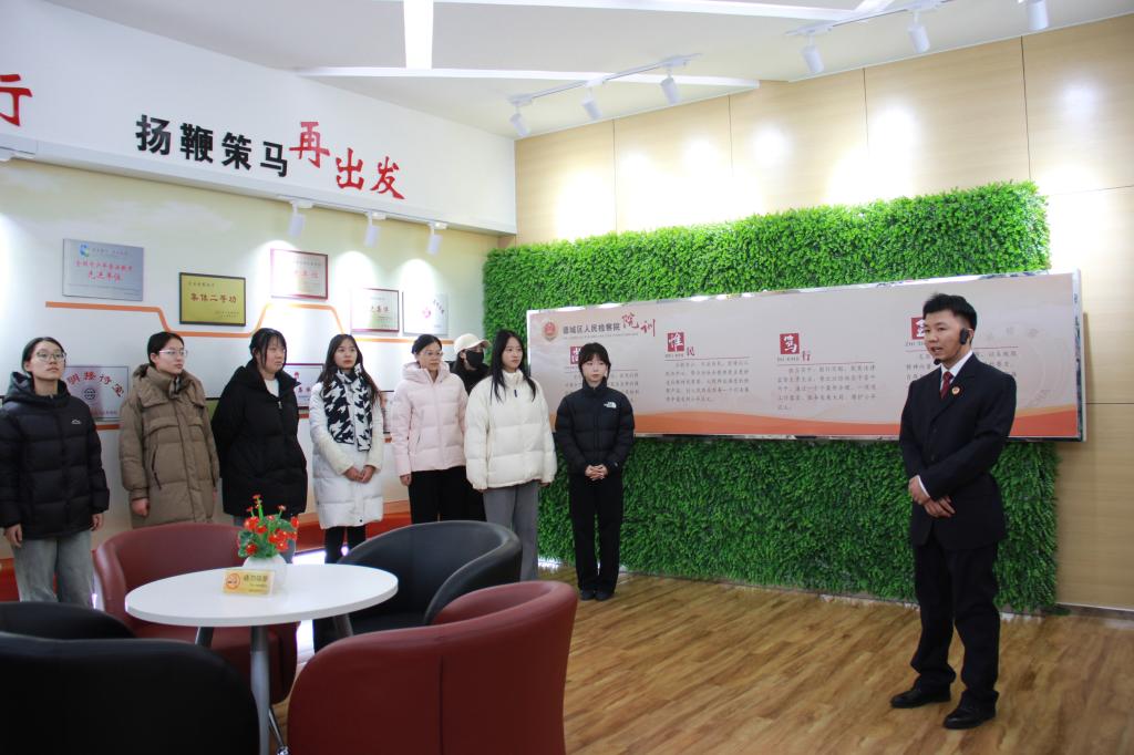 活动伊始,在检察院干警引导下,师生先后参观了党建文化展厅、未成年人检察工作办案区等核心区域。干警结合典型案例与工作实效,详解党建引领下的司法实践成果,重点介绍未检工作品牌特色举措——从涉案未成年人心理疏导、法律援助到社会帮教的全链条保护体系,让师生直观感受司法温度与法治力量。在荣获全市机关青年理论学习示范小组称号的“青检苑”,师生近距离了解青年干警“青・研”周周学、案例研讨、技能实训等成长模式,深切体会检察机关对青年人才培养的重视。