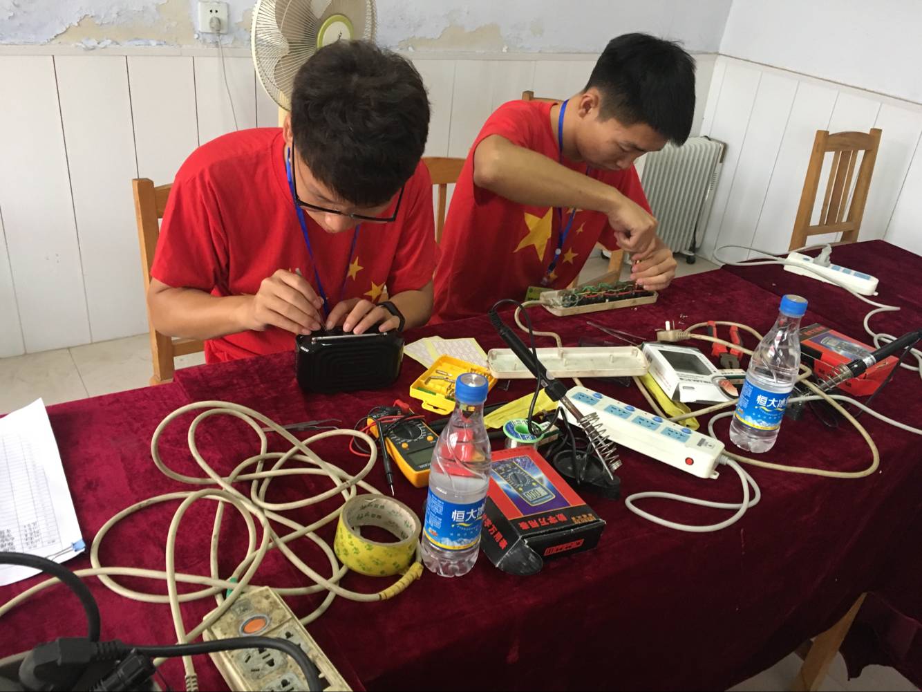 义务维修活动开展前,学生会全体成员分成各个小组在当地进行义务维修宣传,此次维修活动主要针对家用电器,包括电饭锅、电风扇、电暖风、插排等家用电器。活动刚开始,就有许多村民送来损坏电器,登记损坏家用电器的同时,电子科技创新社的技术人员耐心地为村民们讲解这些家用电器的相关维修知识。本次活动中,学生会全体成员发扬不怕苦、不怕累的精神,共计维修家用电器68件,顺利地完成了义务维修活动。