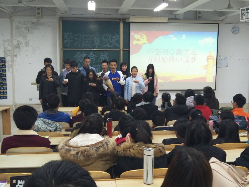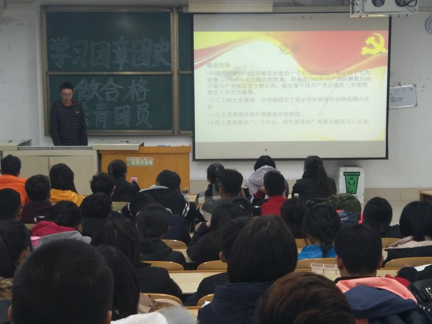 “不忘初心,砥砺奋进”,为积极响应团委“学习总书记讲话,做合格共青团员”教育实践通知,强化学生们对共青团的认识,引导广大团员增强责任感和光荣感。2017年11月15日,物电学院分别于求真楼4002、4009、4008、4010、5009、5010六个教室开展“学习党章团史,做合格共青团员”活动。17级全体同学参加。