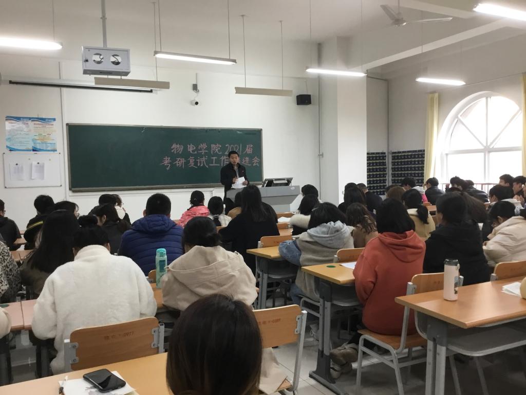 会议伊始,学院负责人针对2017级面临考研复试及调剂的学生给予鼓励和支持,并就复试、调剂前工作的提出合理的建议。要求同学们瞄准目标、找准方法,认识考研大环境找准正确的方向,通过多种渠道收集考研信息及情报,做好复试准备关;劳逸结合、养精蓄锐,专注于复试科目的复习,把状态调整到最佳。随后,分管辅导员根据考研初试成绩对考研形式进行分析,提醒考生对收集的有效信息及资源进行合理的汇总、研判,同时结合历届考研案例典型鼓励同学们增强信心,按部就班做好准备工作。最后,学生提出在备考过程中所遇到的问题,各系主任和班主任进行了耐心解答,并提出,根据同学们的考研情况收集了复试考试科目,并为每一门科目配应辅导老师,物电学院将提供全方位的服务,助考生一臂之力。
