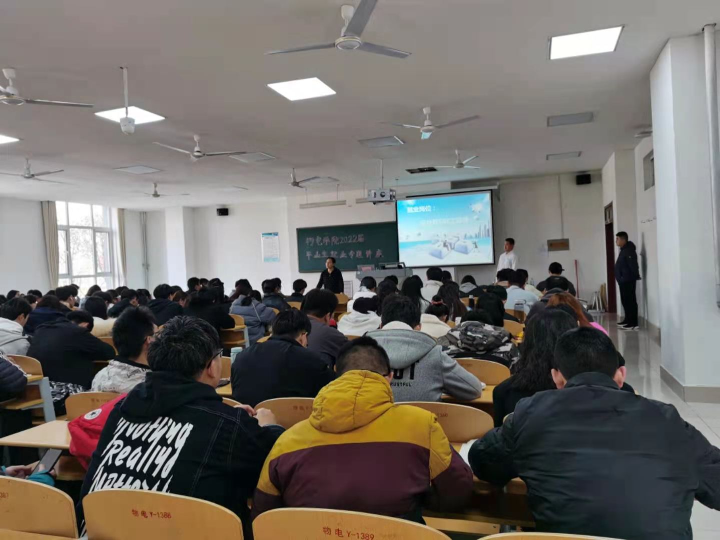 为促进2022届毕业生更好地适应当前就业环境,加强对毕业生就业的指导与帮助,提高物电学院毕业生的就业意识。2021年3月9日下午,物电学院在明理楼0126教室开展了2022届毕业生就业专题讲座。此次讲座面向物电学院2022届毕业生,邀请微曦教育王刘豹老师参加,由辅导员纪芳老师主持。