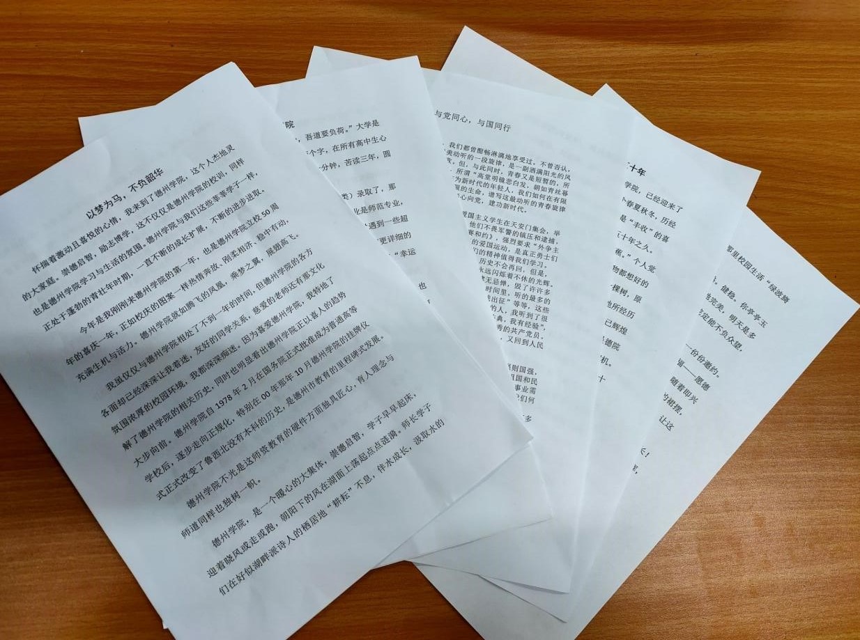此次活动一经开展,就得到了同学们的积极响应,同学们参赛热情高涨,上交的作品也是立意新颖、内容精良、主旨切题,以最真挚的感情表达了对党或者母校的喜爱和自豪。同学们的诗歌恢弘大气、饱含热情;征文感情细腻,意味深长。比赛结束以后,在评委们公平公正的选拔下,产生出优秀的作品。
