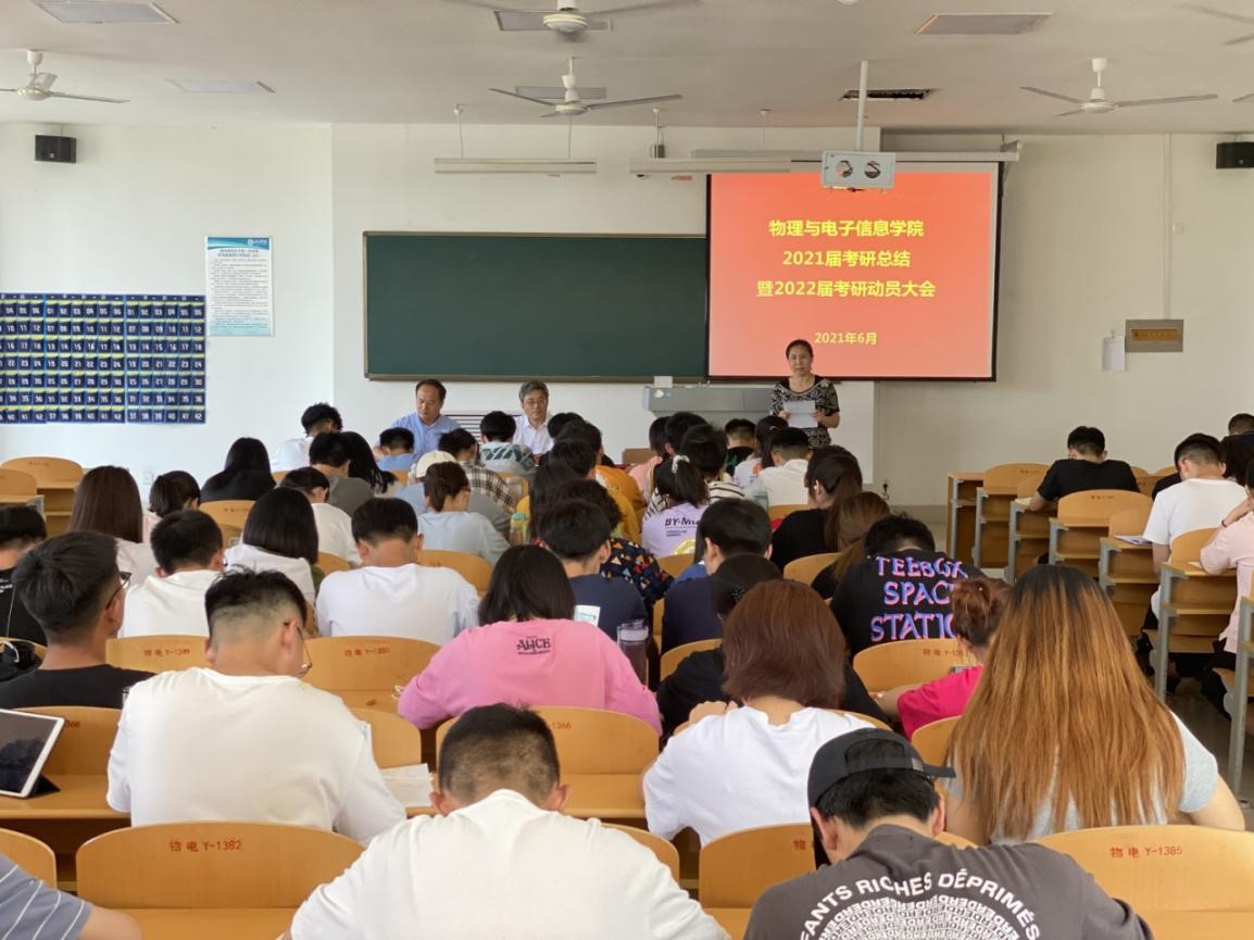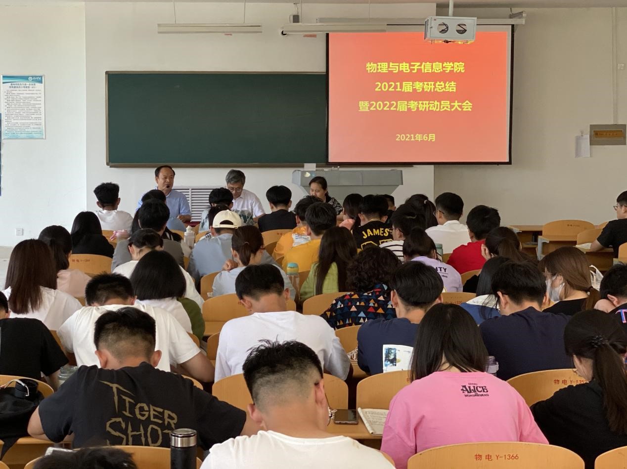 本次会议的召开,表现了学院希望同学们积极考研深造,努力寻求能够施展个人才能的更大空间,为将来成为国家栋梁之才、实现人生梦想而不懈奋斗,深度贯彻习近平总书记对青年学生的期盼,作为新时代中国青年继续发扬五四精神,以实现中华民族伟大复兴为己任,不辜负党的期望、人民期待、民族重托,不辜负我们这个伟大时代。争取在2022年研究生考试中捷报频传,为个人争荣誉,为学院添光彩。