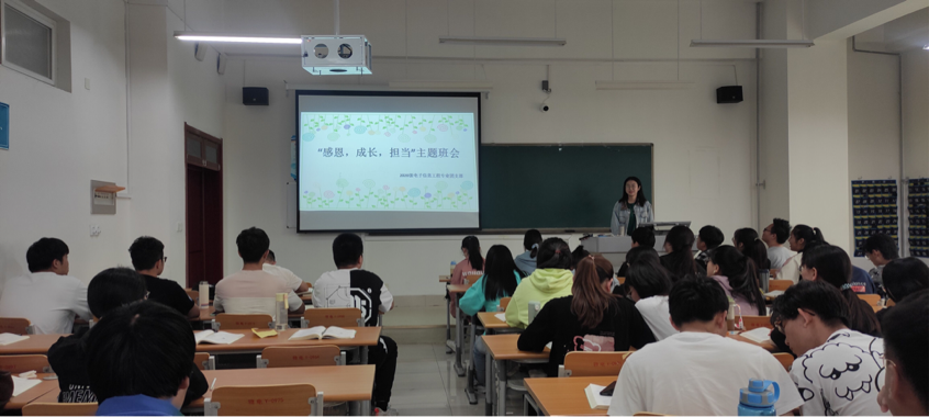 为增强在校大学生的心理意识,提高在校大学生的自我保护意识,物电学院于5月23日开展“感恩、成长、担当”主题班会,本次班会由各班班长、团支书进行组织讲解。