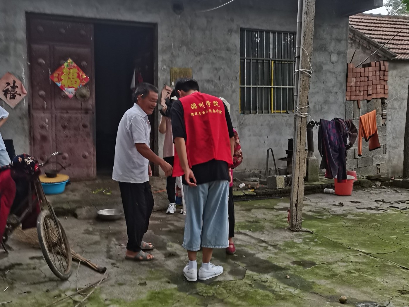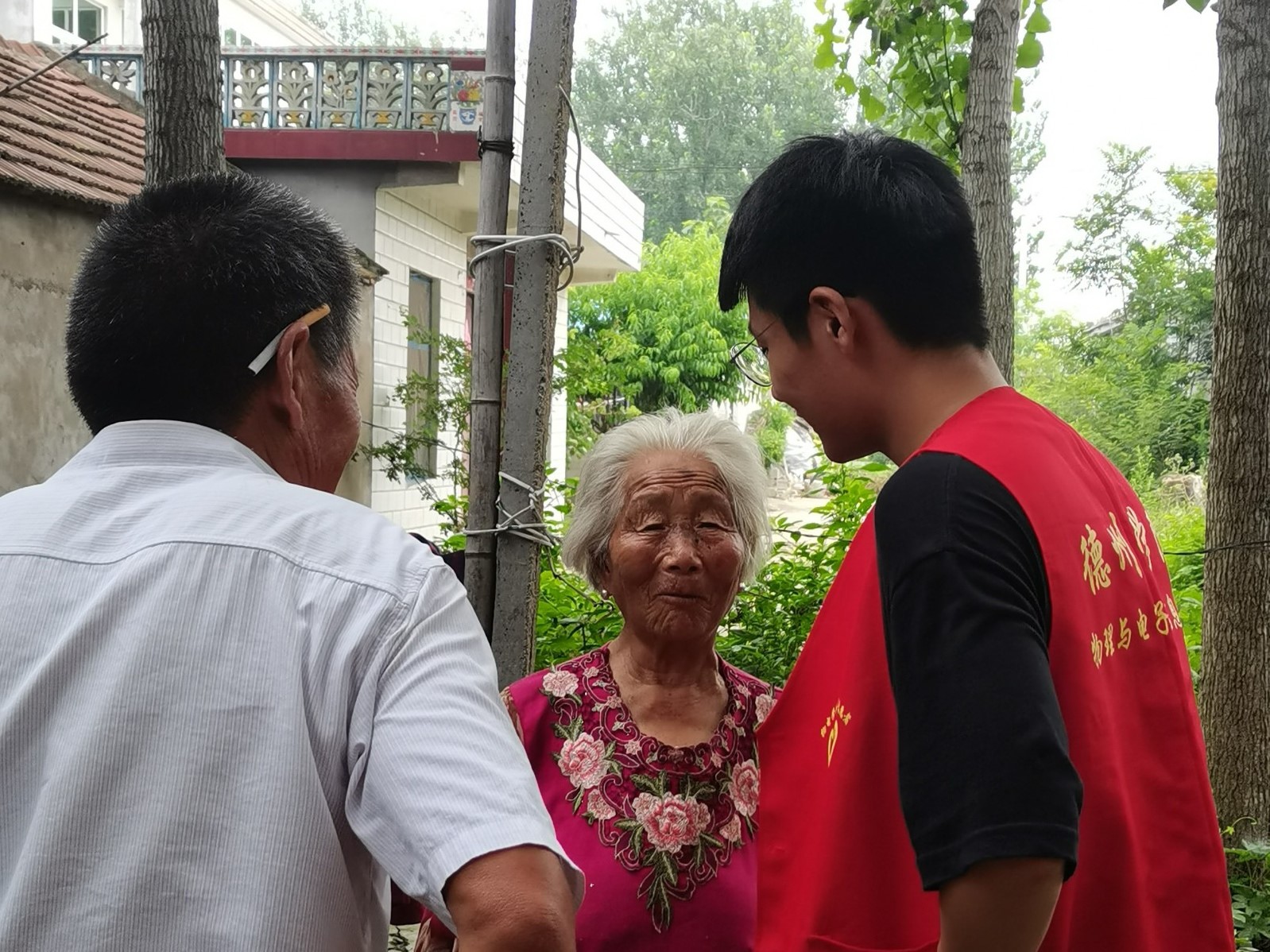 为大力弘扬中华民族尊老爱老传统美德和“奉献、友爱,互助、进步”的志愿者精神。7月20日,物电学院的大学生志愿者组建了“树孝亲风尚,立敬老美德”暑期社会实践团,赴枣庄市台儿庄区邳庄镇孙庄村开展暑期实践活动,为老人们送去慰问品,并开展志愿服务。