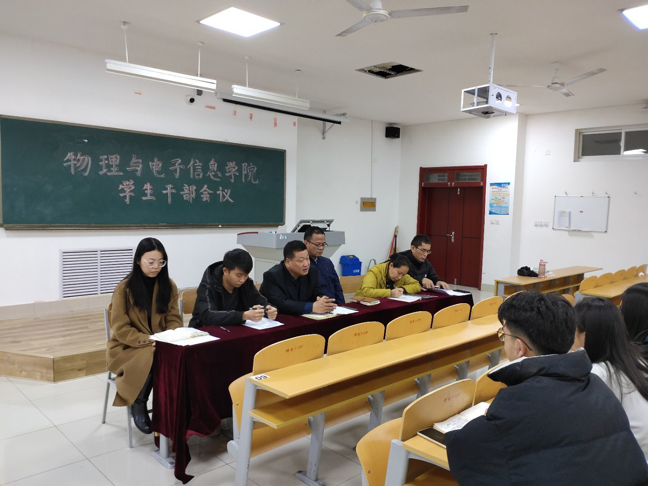11月21日,365上市公司在明理楼 0126召开学生干部工作会议,物电学院党委副书记出席本次会议并讲话,学院各辅导员以及学生会各部门主要负责人参加本次会议。
