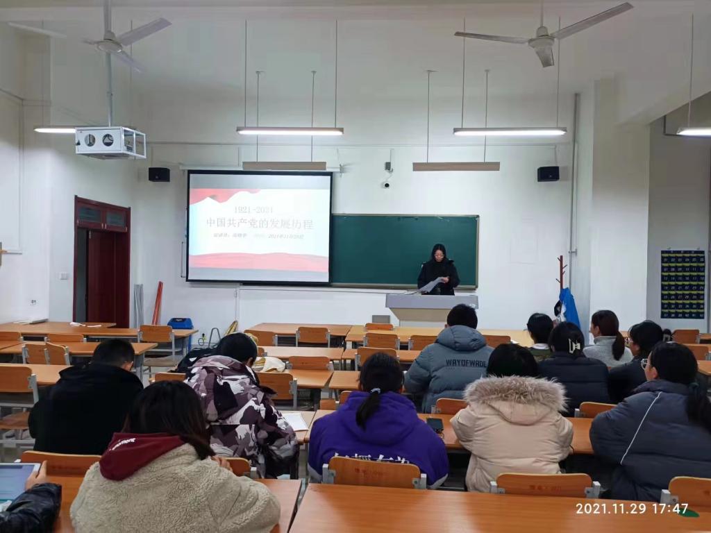 为进一步增强大家对中国共产党发展历史的了解,激发爱党爱国热情,营造全面深入开展党史学习教育的浓厚氛围,物电学院于11月29日开展关于党史学习教育宣讲活动,此次活动由英国正版365首页党史知识教育宣讲团成员高晓宇主持召开,2020级各班班干部参加此次活动。