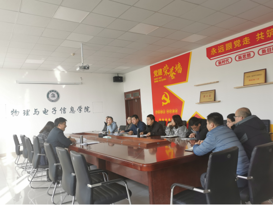 物电学院主要负责人首先对学院现阶段的准备工作进行了详细的汇报,主要包括人才引进工作进度,对照申硕要求人才引进的下一步工作计划与努力方向;骨干教师与专任教师发展现状,对照申硕骨干教师与专任教师发展与培养的努力方向等。同时唐延柯院长表示,物电学院正在对照申硕指标进行全面整改完善,虽然相关工作仍然存在一定差距,但学院将集合全院老师的力量,拼时间,拼资源去完成学校给予的既定任务。