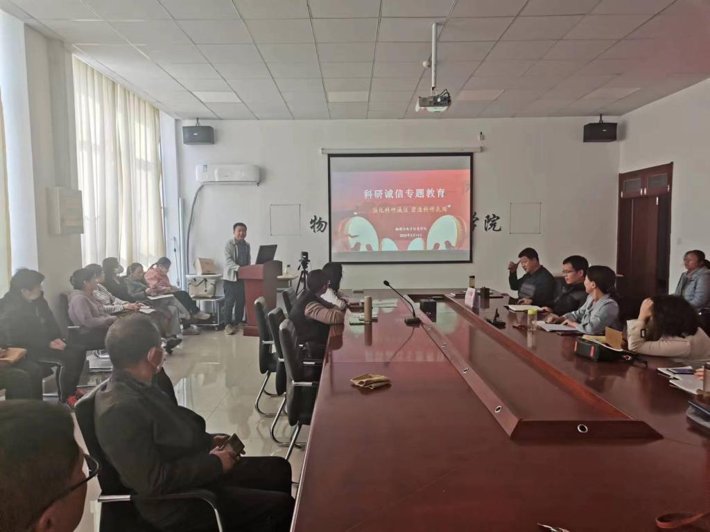 为响应国家和学校号召,3月14日,物电学院在启智楼0365会议室举办科研诚信专题活动,开展“强化科研诚信,营造科研氛围”宣讲教育。物电学院全体教职工参加了宣讲活动。