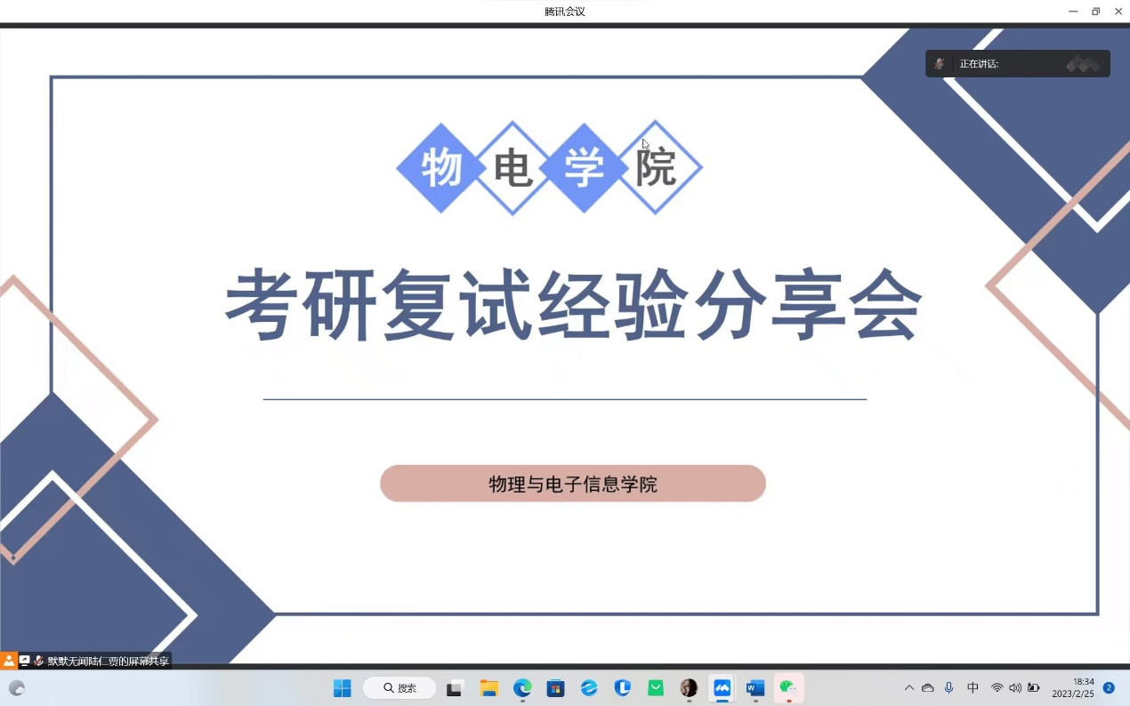 为促进学院学风建设,营造良好学习氛围,帮助考研学生做好复试准备,2月25日晚,365上市公司召开2023年考研复试经验分享会。本次分享会以线上会议形式召开,参会人员为考研学生及优秀毕业生。