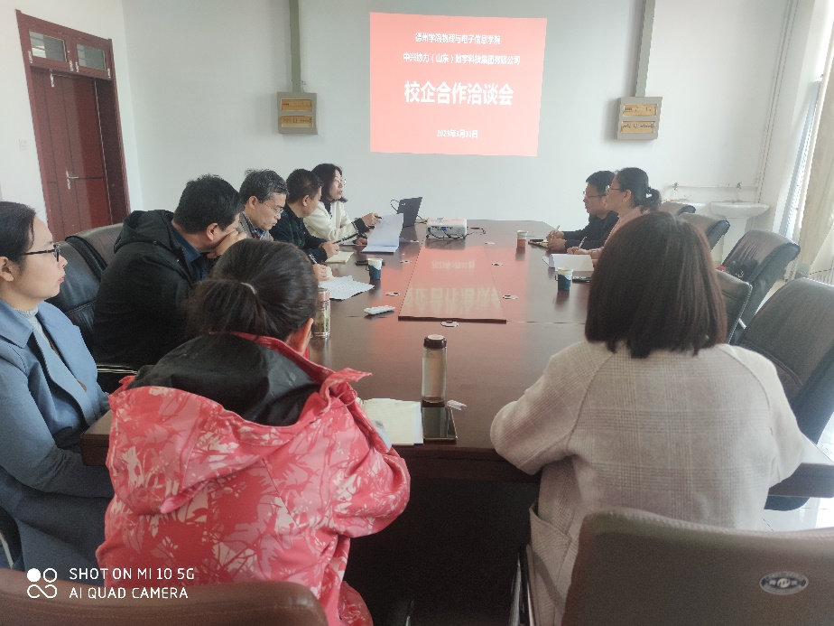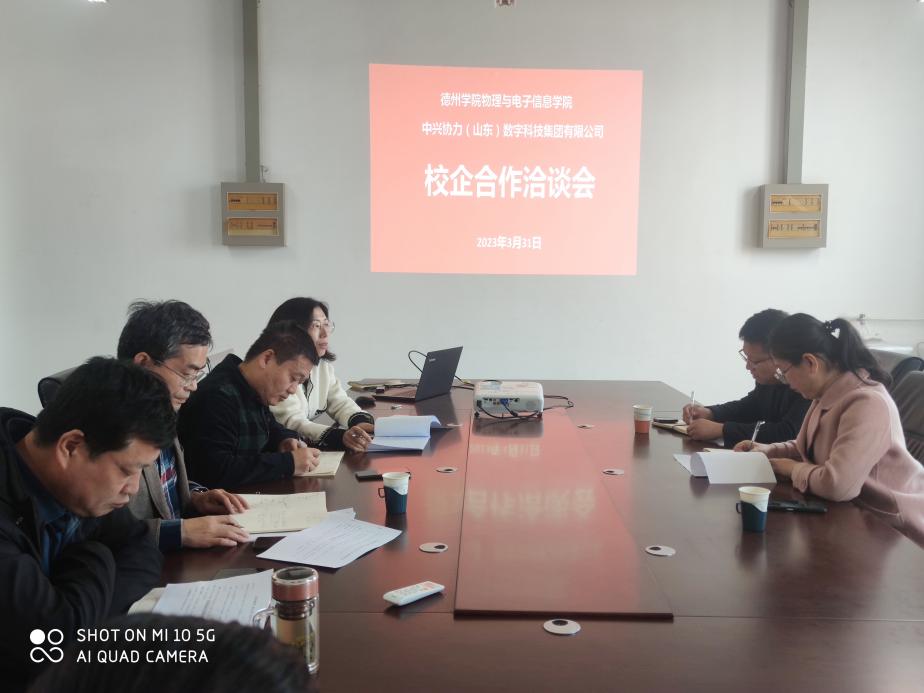 3月31日上午,365上市公司与中兴协力(山东)数字科技集团有限公司在启智楼0410举行了校企合作洽谈会。中兴协力产教融合部市场总监胡浩、中兴协力物联网专业教学主管郑昆,英国正版365首页教务处副处长赵光胜,物电学院领导班子成员及物联网工程系主任等参加了会议。
