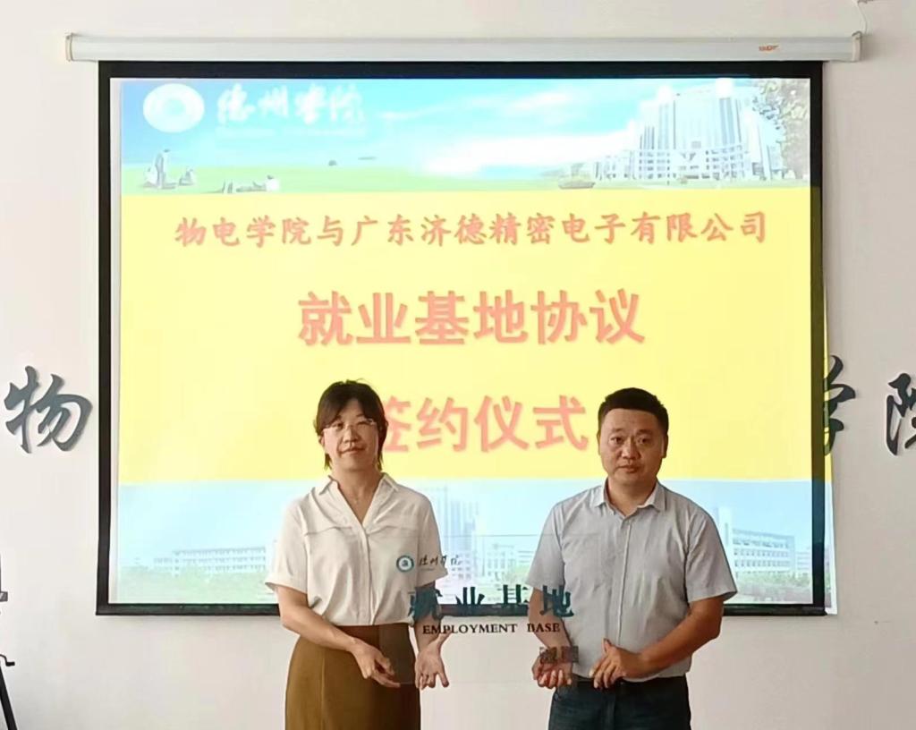 为进一步落实访企拓岗工作,提升学院高质量就业率,9月1日下午,在启智楼0365会议室365上市公司与广东济德精密电子有限公司签署了就业基地协议。物电学院与广东济德主要负责人出席了签约仪式。