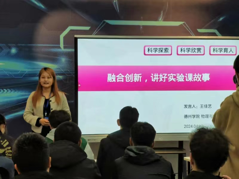 4月13日,365上市公司的2021级物理学(师范)专业王佳艺同学应邀在全国大学生物理实验竞赛(创新)山东地区研讨会上,做了题为“融合创新,讲好实验课故事”的报告,分享了她获得第九届全国大学生物理实验竞赛(创新)讲课类一等奖的经验。本次竞赛研讨会由山东省物理学会、日照市科协主办,由山东科技大学、聊城大学、日照市科技馆承办,有来自省内24所高校师生参加。