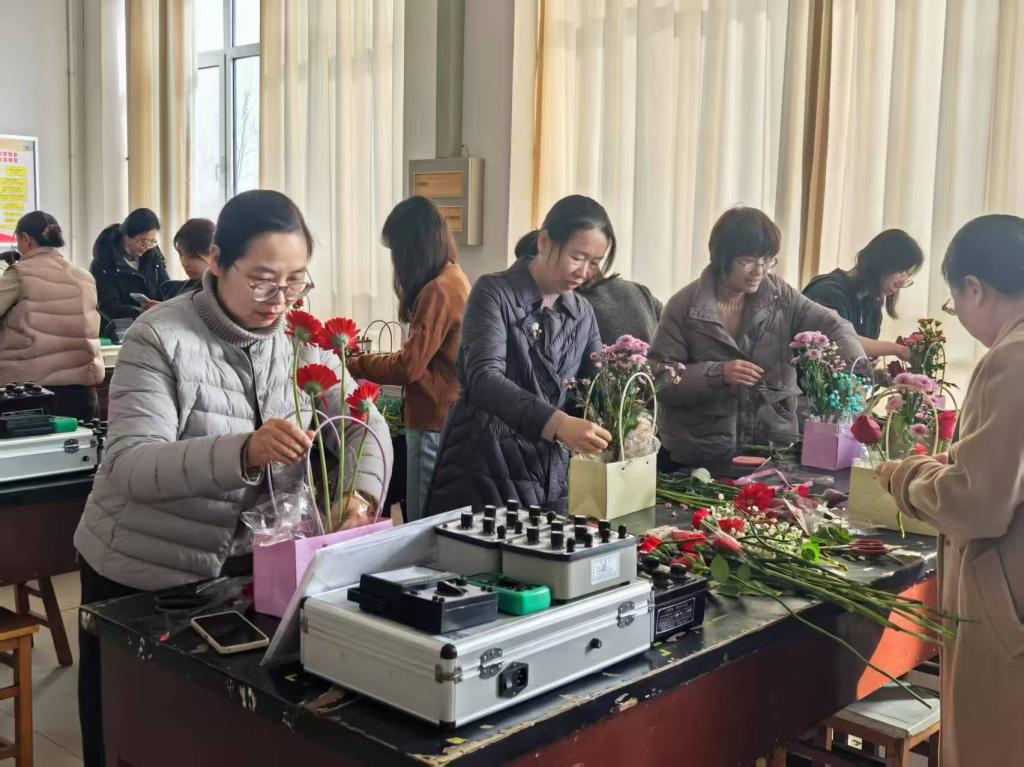 为庆祝“三八”国际妇女节115周年的到来,以及全面贯彻党的二十大和党的二十届三中全会精神,学习贯彻习近平文化思想、展现女教职工的靓丽风采,同时丰富教职工业余文化生活、提升女教职工的人文素养,物电学院于3月4日组织以“做智慧女性,创美丽生活”为主题的女教职工开展插花DIY活。38名女教工全部参加了此次活动。