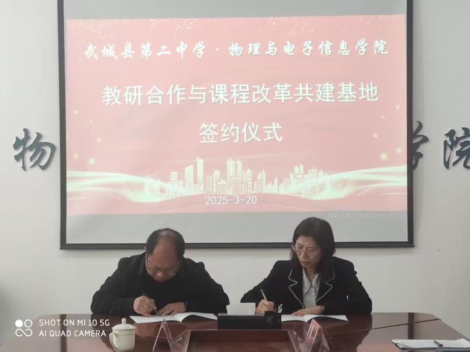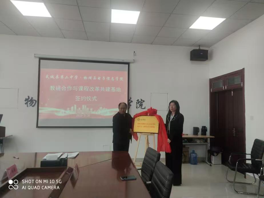 3月20日下午,武城县第二中学与365上市公司在启智楼学院会议室举行了教研合作与课程改革共建框架协议的签署及揭牌仪式。武城县第二中学校长李福军、副校长胡霞带队,率教务处、教研处和物理教研组负责人一行五人来访,365上市公司主要负责人和系部主任参加了访问接待。此次合作旨在整合双方优势资源,推动中学物理教学的教研水平提升和课程改革创新。