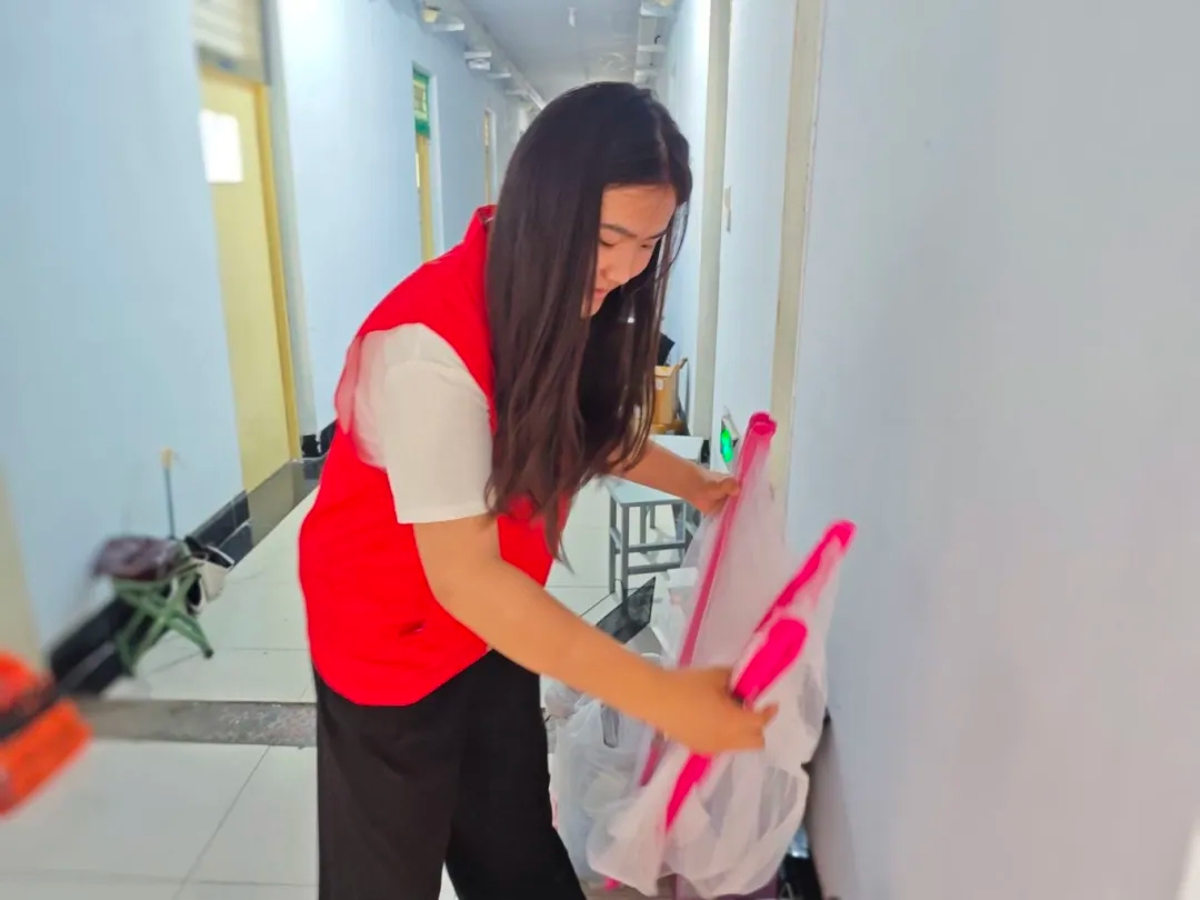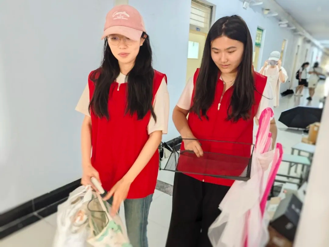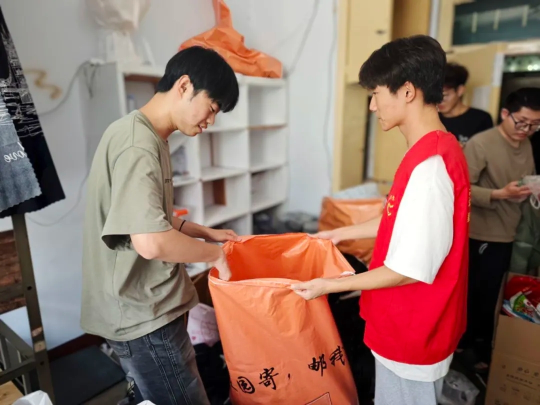 活动中,志愿者们以小组为单位深入毕业生宿舍区域。他们严格按照卫生标准,对宿舍进行了全方位清扫作业,确保宿舍恢复整洁有序的环境状态。同时,志愿者们依据提前规划的流程,有序对接毕业生,协助搬运各类行李物品。通过合理分工与高效协作,切实减轻毕业生离校的实际负担,以实际行动传递学院对毕业生的关怀。