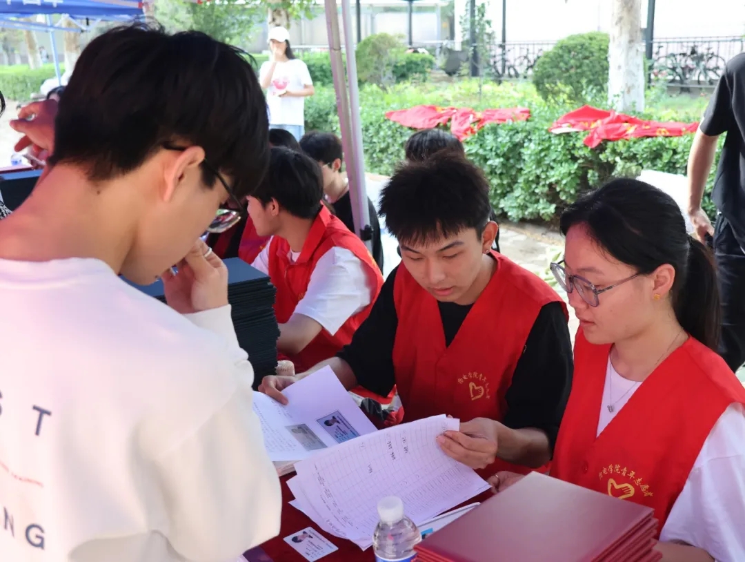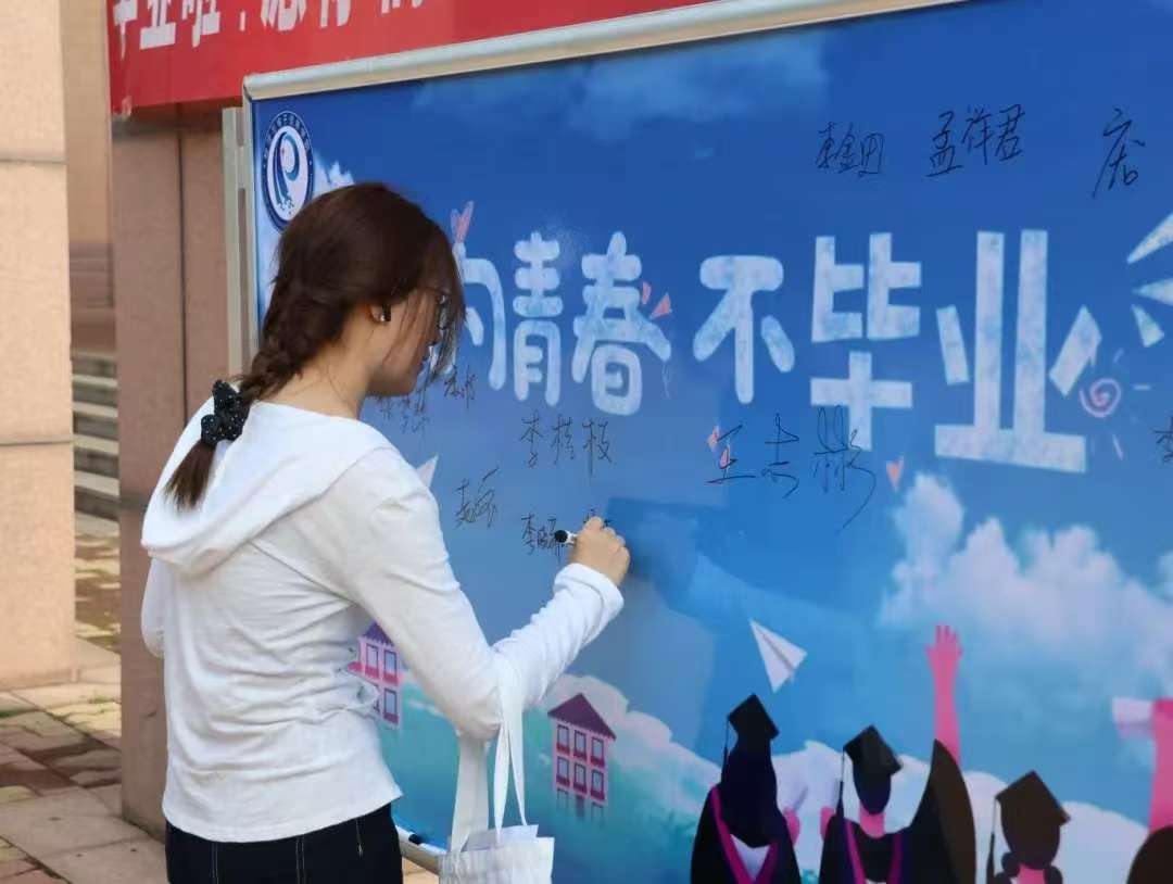 在毕业生离校服务站,志愿者们严格遵循规范流程,完成毕业证、学位证等重要毕业材料的核对与发放工作,保障毕业生离校手续办理的准确性与高效性。同时,学院还为毕业生准备了专属伴手礼,志愿者们用双手递上这份心意,让学院的深切关怀与殷切祝福,随着礼物传递到毕业生手中。一旁的签名墙前,毕业生们纷纷提笔,留下自己的名字与对校园的不舍,与老师、同学合影留念,用照片定格这段难忘的青春岁月。
