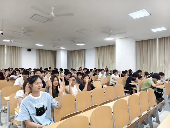 活动现场,主讲人吴秋语围绕应急科普主题有序推进。在观看趣味安全视频环节,精心挑选的宣传动画短片和真实案例依次呈现,从火灾发生时如何正确逃生、穿越浓烟的技巧,到溺水险情的预防与自救方法,画面生动且知识点密集,牢牢吸引同学们目光。视频结束后,主持人紧扣视频要点与日常安全常识出题,“灭火器压力表红区代表?”“溺水施救的黄金时间是几分钟?”等题目刚抛出同学们便踊跃举手,激烈抢答,现场气氛热烈。答错的同学在主讲人耐心讲解下明晰错误,答对的同学收获小奖品,在趣味互动里高效巩固安全要点。参与同学纷纷表示,这种“看+玩+学”的形式,让安全知识学习跳出枯燥说教,听得懂、记得牢,实实在在提升了安全认知 。