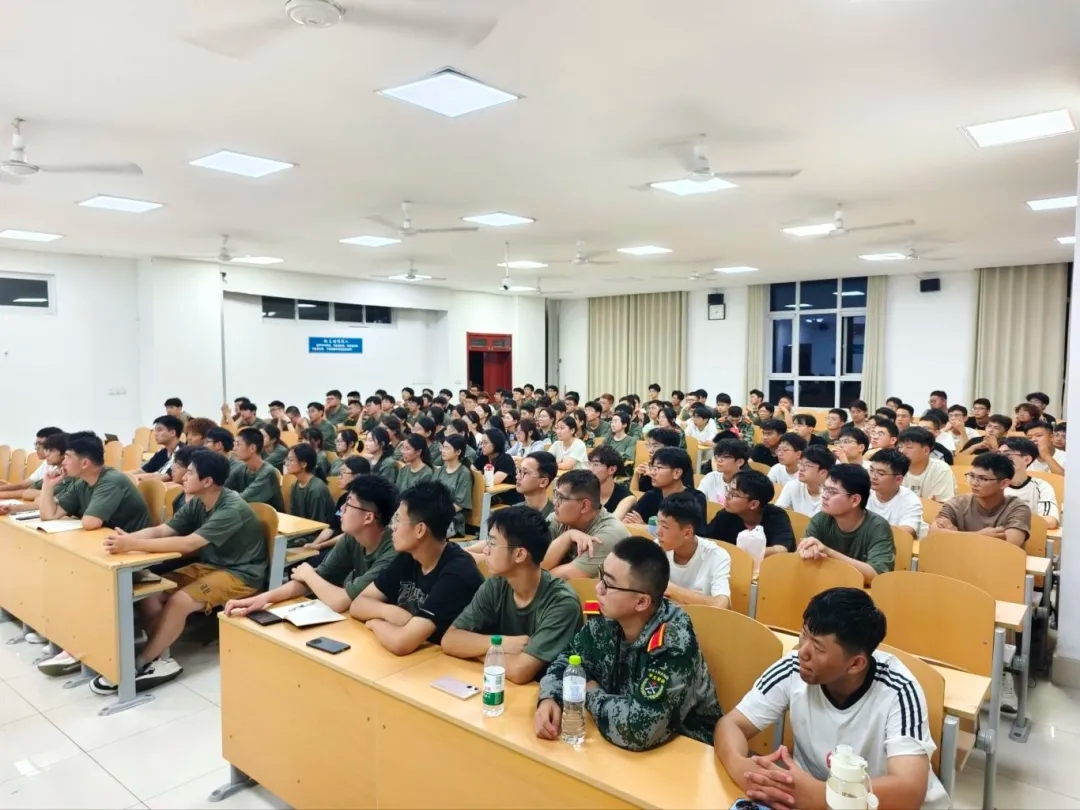 活动伊始,学院共青团工作负责人以“青春向党,团旗引路”为核心,从团史、团情、团务三方面展开讲解。通过梳理共青团百年发展历程中的关键节点与先进事迹,让新生深刻理解团组织的初心使命。同时结合学院团学工作特色,介绍日常活动形式及育人目标:例如宿舍管理方面,从作息规律、安全用电、卫生维护、人际关系四个维度,深入阐述养成良好宿舍习惯的重要性,强调宿舍是大学生活的“第一阵地”——良好的宿舍氛围不仅关乎个人生活质量,更能为学业发展筑牢稳定根基,帮助新生明晰团组织在大学成长中的“引领角色”。团务指导环节,教会新生如何规范参与团内事务,强化“团员身份认同”,并特别介绍学院24级学生在军训期间斩获的荣誉,以优秀典型案例激励25级新生以学长为榜样,在军训中锤炼坚强意志、培养团队协作精神,充分展现物电学子的青春风貌。