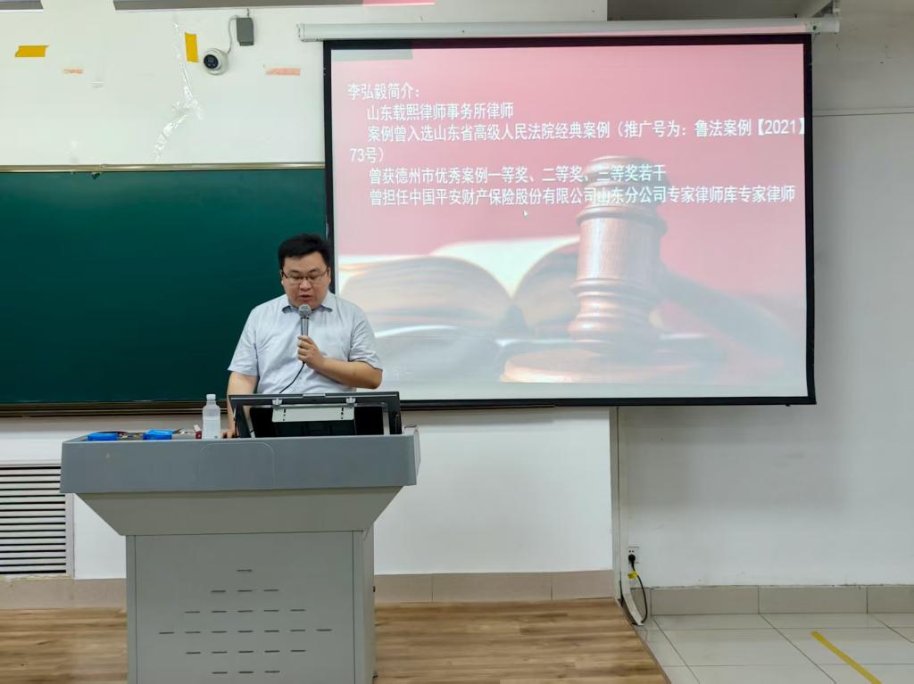 为深化学校法制教育,增强学生法律意识与自我保护能力,9月13日,物电学院特邀山东载熙律师事务所李弘毅律师,于明理楼开展法律知识专题讲座。
