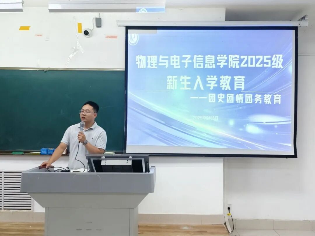 为引导2025级新生快速适应大学环境,以理想信念领航青春成长,9月8日,物电学院于明理楼组织开展团史团青团务新生教育活动。学院共青团工作负责人赵剑桥、优秀学生干部代表及2025级全体新生参加。
