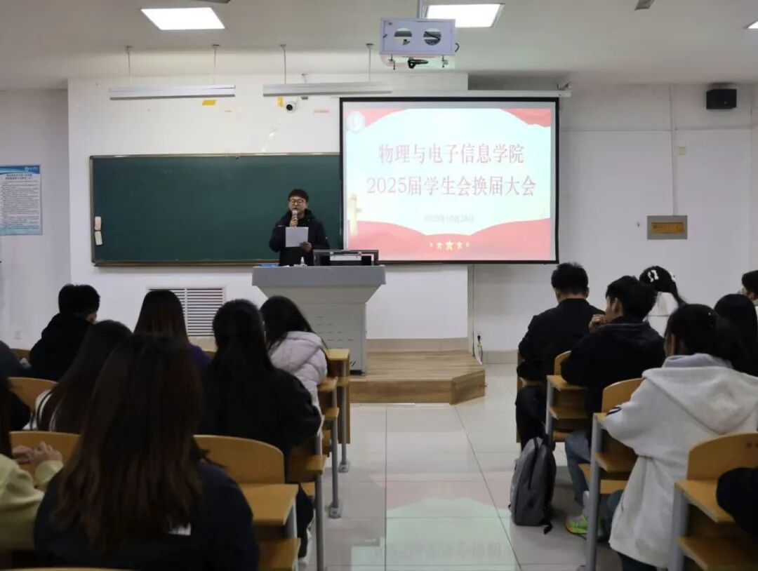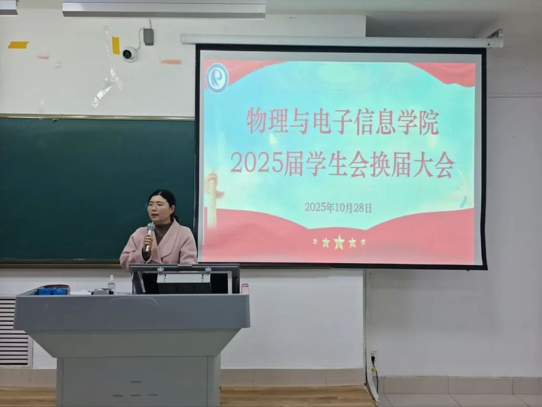 为精准提升学生干部队伍服务质效,持续深化学生会组织建设,切实筑牢学生工作“桥梁纽带”作用,10月28日,物电学院在明理楼126教室召开2025届学生会成立暨换届大会,学院党委副书记刘秀华、全体辅导员及2024届、2025届学生会成员参会。
