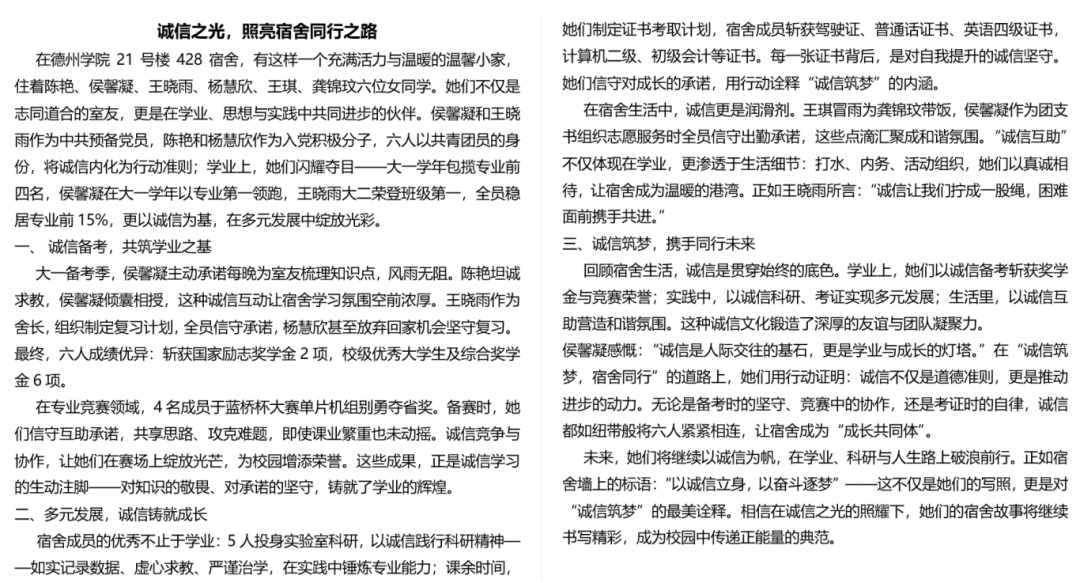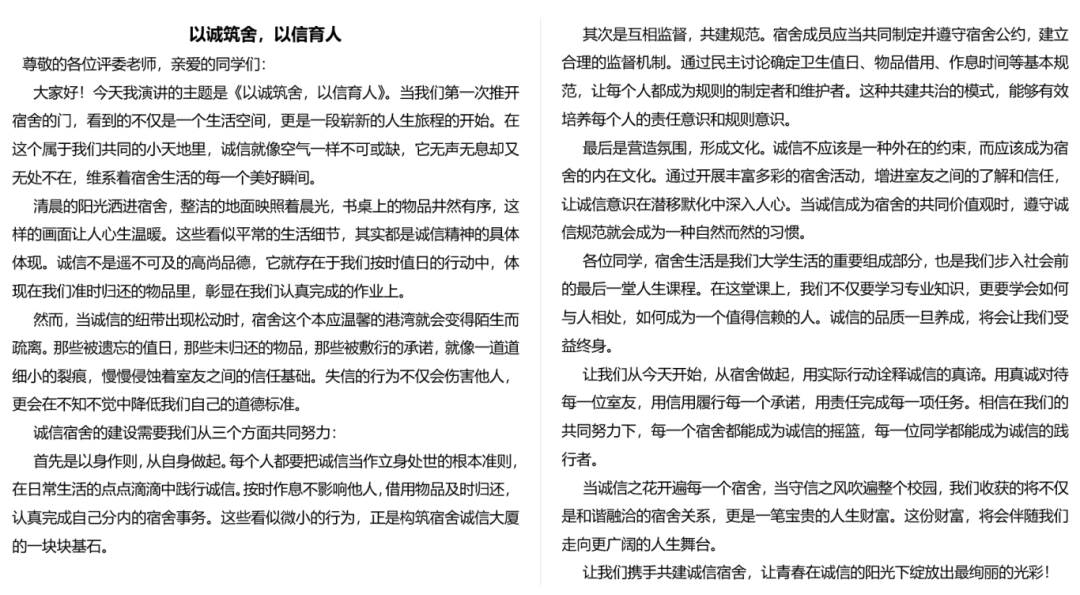 诚信践行的千万种模样,每一种都是从心出发的责任坚守。希望大家都能真诚地守护诚信与热爱宿舍生活,构筑最温暖的集体!此次活动的开展,为同学们搭建了一个展现诚信内涵、激发创新活力、营造和谐氛围的舞台,相信在此次活动的倡导下,英国正版365首页的学子们将更珍视诚信价值,以更饱满的热情共建文明校园。