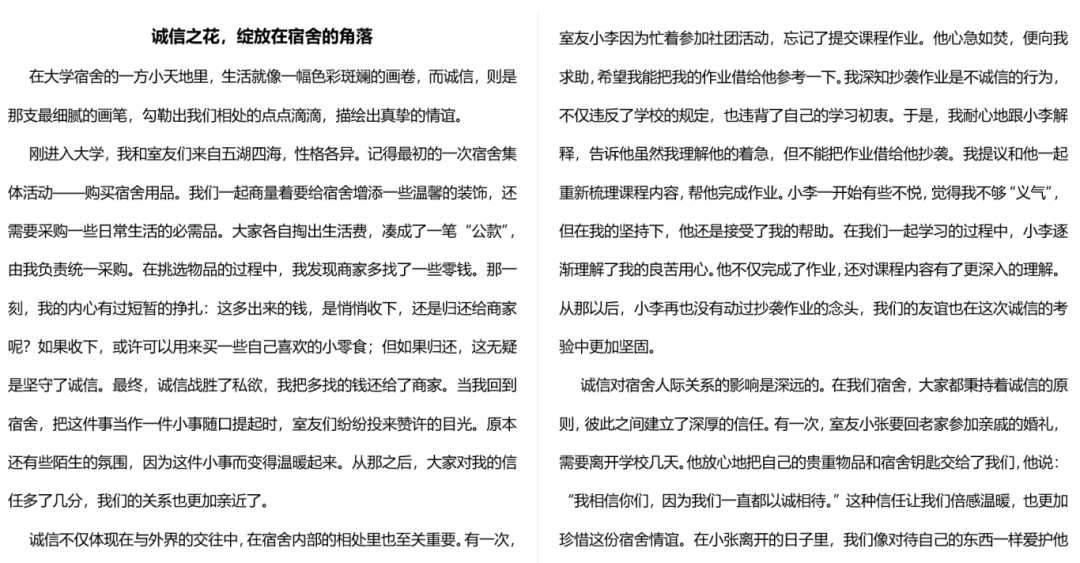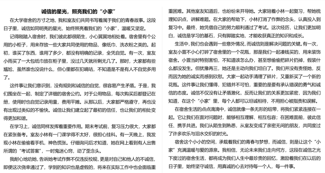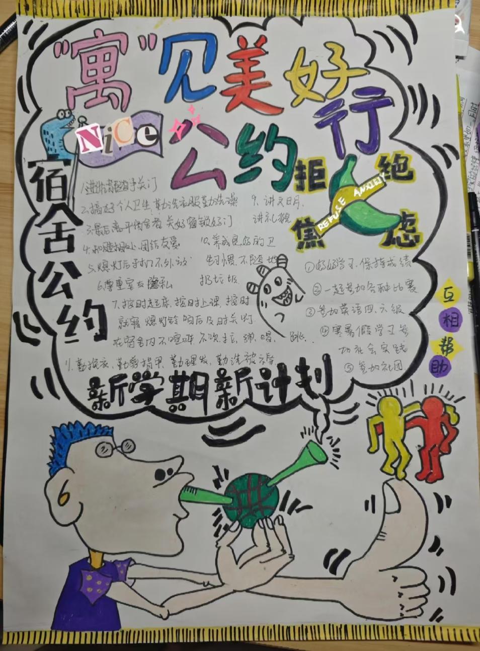 这些作品既展现了同学们对宿舍诚信主题的深入思考,又凸显了他们的创作才华。这些作品将成为校园的独特亮点,引导更多人践行诚信美德,释放创造力,共同打造充满正能量的校园生活空间。