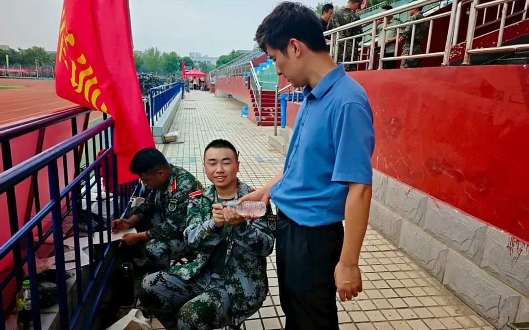 训练期间,辅导员全程陪伴。烈日炎炎下,他们时刻关注着学生的状态,一旦发现有学生体力不支,便迅速上前,给予关心和照顾,及时将学生带到阴凉处休息。