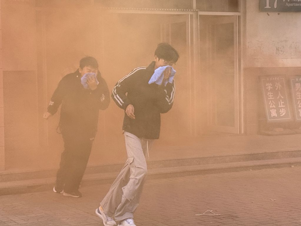 活动现场,急促的警报声骤然响起,橙色烟雾弹在宿舍楼外快速弥漫,瞬间营造出逼真的火场场景。同学们在现场辅导员的指引下,迅速用湿毛巾严密捂住口鼻,采取低姿弯腰的规范姿势,沿着预设疏散路线,快速且有序地向安全区域撤离。各楼层安全员坚守岗位、履职尽责,密切留意现场动态,及时疏导人流、化解拥堵,全力保障撤离过程安全高效。短短几分钟内,全体120名参演学生均顺利抵达指定集合点,充分展现了扎实的应急反应能力和优良的纪律作风。演练尾声,现场辅导员结合本次演练的实际情况,面向全体参演学生细致拆解火场逃生核心要点,着重强调保持冷静不慌乱、低姿贴近地面前行、湿毛巾严密捂口鼻等关键实操技巧,让同学们对消防安全知识的理解更深刻、记忆更扎实。