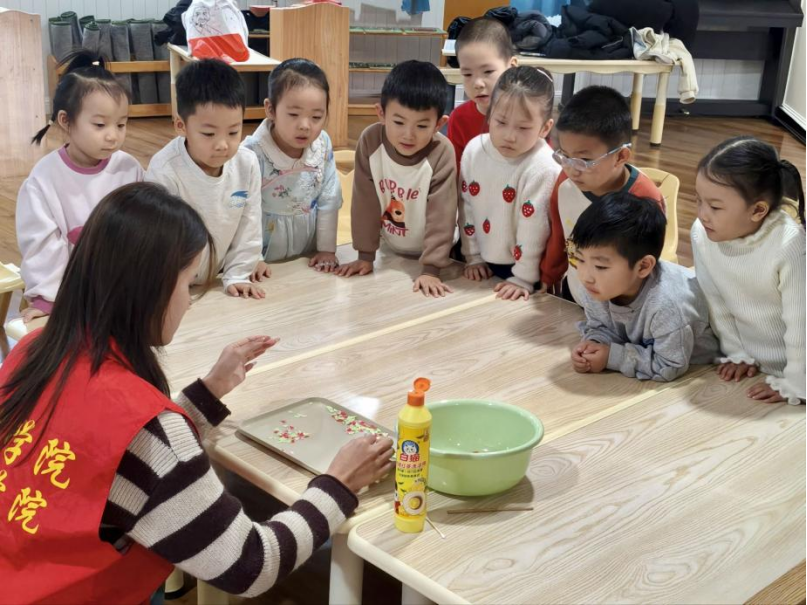 为弘扬“两弹一星”精神,提升青少年科学素养,培育新时代科技创新后备力量,12月19日,365上市公司24级物联网工程3班级团支部“星光”科普志愿服务队在兴河湾幼儿园开展“星耀中华魂,实验探科学”主题科普活动。