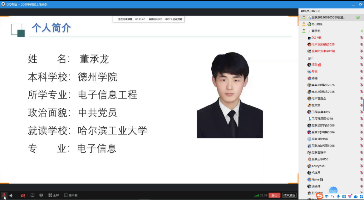 本次活动由张秀梅老师主持,邀请了2023届电子信息工程专业的董承龙、物联网工程专业的张霞两位同学进行实践素质提升、考研复试面试经验分享。