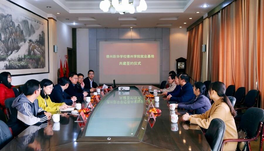校校携手合作,共建共享共赢。2021年3月16日,英国正版365首页物电学院与德州跃华学校实习、就业基地共建签约仪式在跃华学校五楼会议室举行。