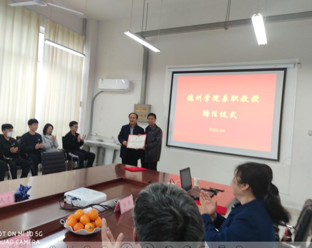 为加强学科专业建设和师资队伍建设,4月2日,物电学院在启智楼0365室举行“特聘教授聘任仪式”,德州跃华学校杜成才老师、赵路洋老师、物电学院党总支书记赵庆福、院长刘汉平、副院长邹艳出席聘任仪式。