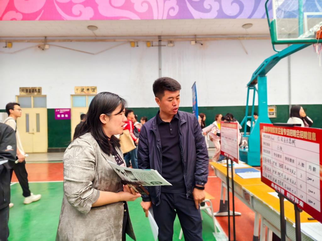 招聘会现场,气氛热烈而有序,来自菏泽、淄博等众多城市的各企业精心布置展位,通过宣传海报、发放资料等方式,积极展示企业优势与岗位需求,提供的招聘职位涵盖营销员、技术员、教师等多个领域。学院老师穿梭于各个展位之间,与企业代表亲切交流,详细了解企业的用人标准、发展规划。学生们手持简历,主动与企业沟通,积极了解岗位信息,踊跃投递简历。在交流过程中,学院老师与企业就人才培养、实习就业、产学研合作等方面进行了深入探讨。企业代表纷纷表示,希望能与学院建立长期稳定的合作关系,共同培养适应市场需求的高素质人才。学院也表达了与企业在人才输送、课程共建等方面进一步合作的意向,期望通过优势互补,实现校企共赢的未来发展局面。