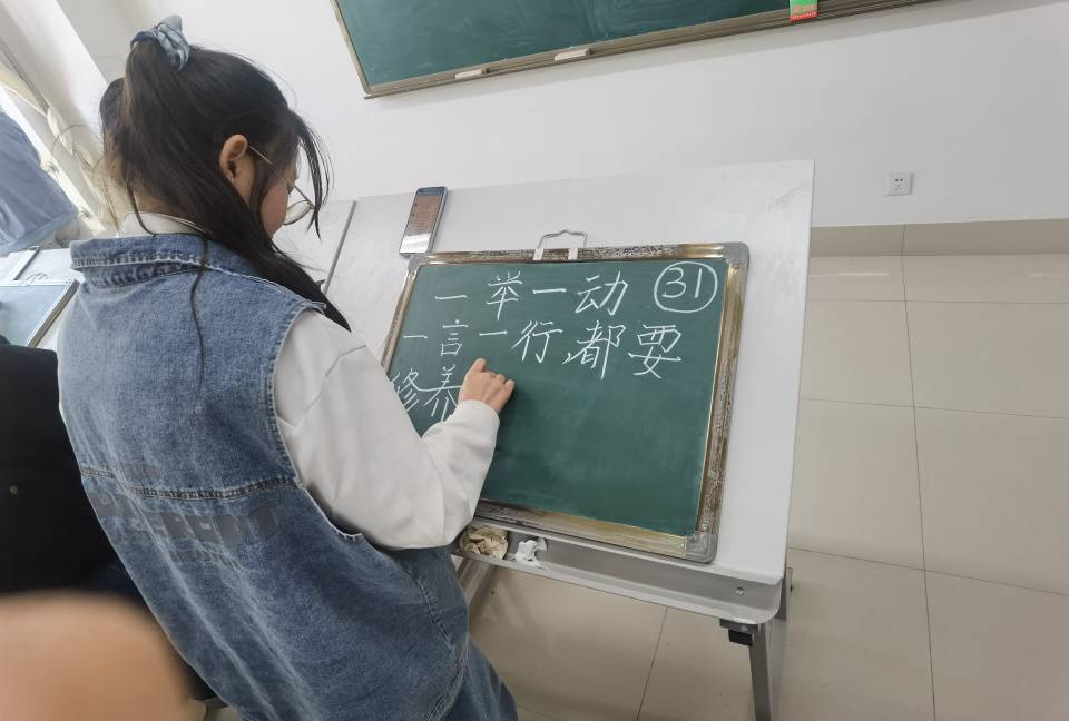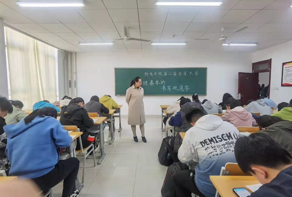 办赛宗旨为促进校园文化生活建设,提升学生的教学基本功,营造练字赏字的文化氛围。大赛参赛形式灵活,内容多样,分为硬笔和粉笔两组依次进行。比赛中,每位同学都满怀激情,以热情饱满的姿态投入到创作过程中。他们那一张张挥毫着汗水的脸颊,一幅幅用心书写的作品昭示着这段时间他们备赛的艰辛与不易。书写时那起笔的严谨、挥笔的洒脱以及收笔的利落,更是彰显出物电学子的认真与自信。大赛步入尾声后,有的作品娟秀婉约,有的大气舒展,有的端正整齐,这些都充分展示了物电学子扎实的教学基本功。