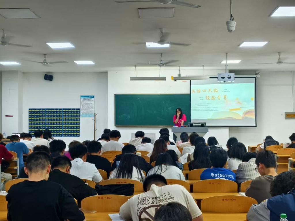 为助力同学们高效备考英语四六级、提升英语综合能力,5月12日,物电学院在明理楼126教室举办“经验为帆,学海远航”四六级经验分享会。活动创新采用“主分会场+线上会议”模式:主会场设于明理楼126,分会场覆盖各晚自习教室,23级学长学姐通过腾讯会议码同步参与,大幅拓展了参与覆盖面。