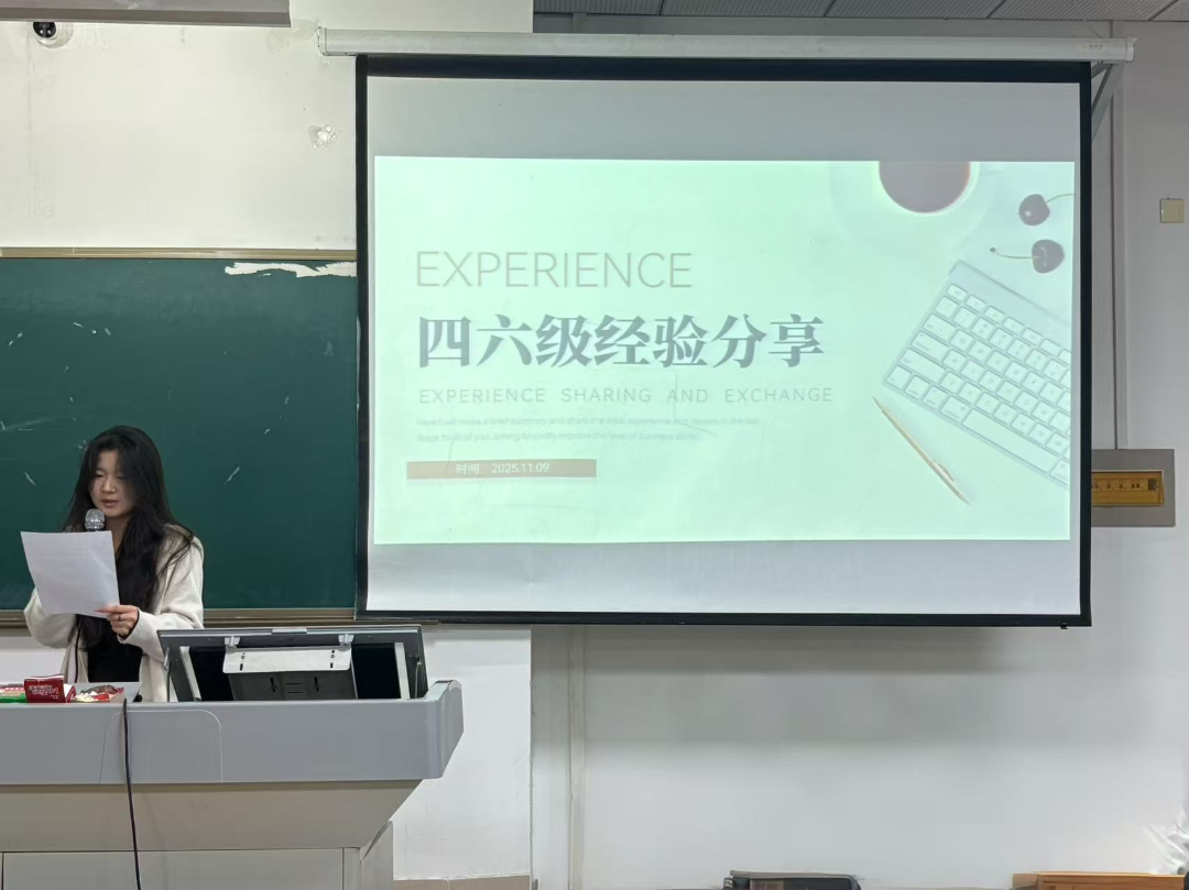 为帮助大学生高效备战四六级,提升通过率与成绩水平,11月9日,物电学院在明理楼225教室举办四六级经验分享会。本次活动特邀23级互联专业卢嘉欣、郝兴华两位四六级高分过级的同学分享实用备考策略与应试技巧,助力学子在考场上从容应对,顺利通关。