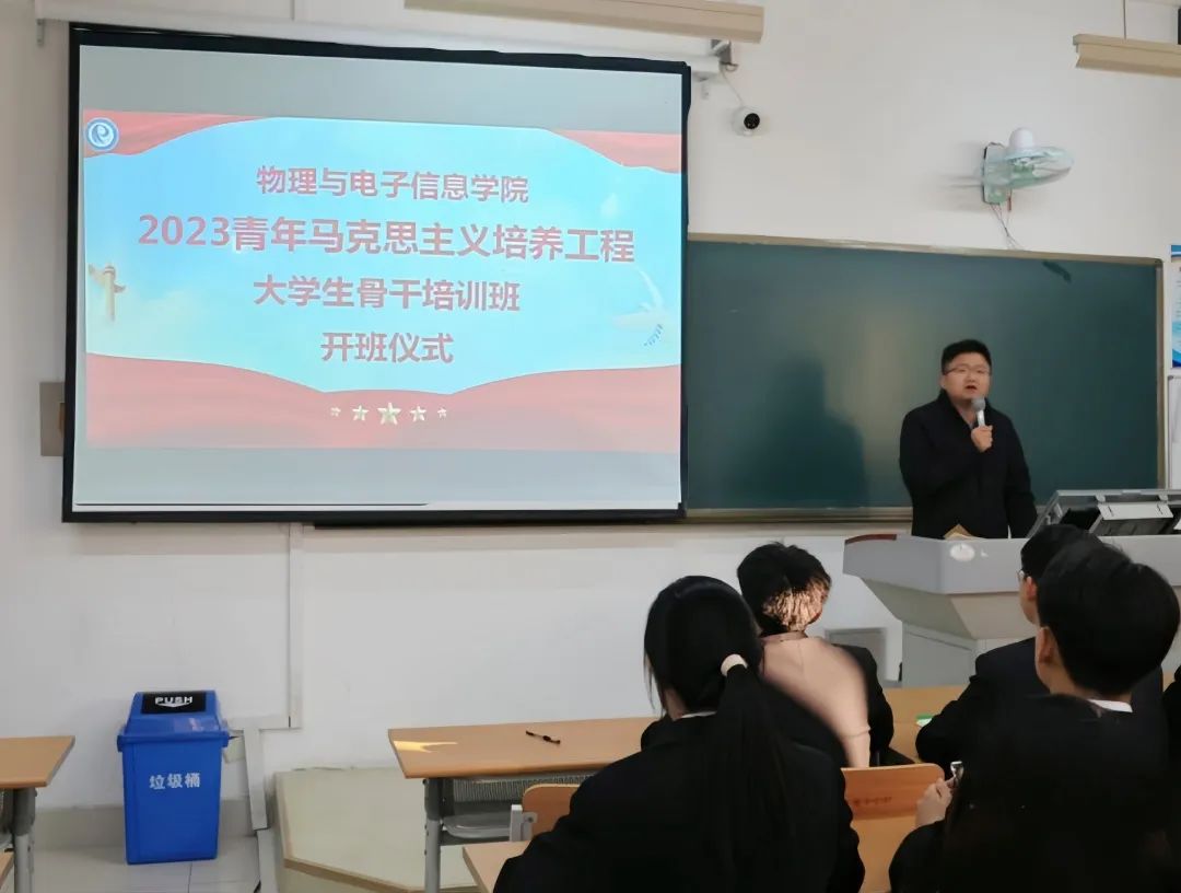 为深入学习贯彻习近平新时代中国特色社会主义思想和党的二十大精神,努力培养和造就一批政治坚定、作风过硬、素质全面的青年政治骨干队伍,物电学院于2023年11月14日举行了“青年马克思主义者培养工程 ”大学生骨干培训班开班仪式。