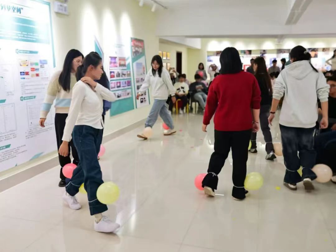 活动中,主持人组织参与活动的同学们进行了自我介绍,并展示了各自的队徽和队歌,这些充满创意与个性的展示不仅展现了学生们的才华,也增强了团队的凝聚力。随后,主持人带领同学们进行了“听歌识曲”“踩气球”“你画我猜”“你有我没有”“击鼓传花”等有趣的心理游戏,营造了欢乐的氛围,释放了同学的心理负担。游戏过程中,同学们积极表现,真诚分享,通过紧张刺激的对决和携手合作的默契,增进了彼此间的交流与共鸣。