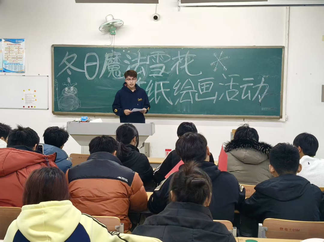 为丰富大家的冬日文化生活,感受传统手工艺与绘画艺术融合的魅力,11月24日,物电学院于明理楼117教室开展了“指尖裁雪韵,笔墨画冬光”冬日剪纸绘画活动。