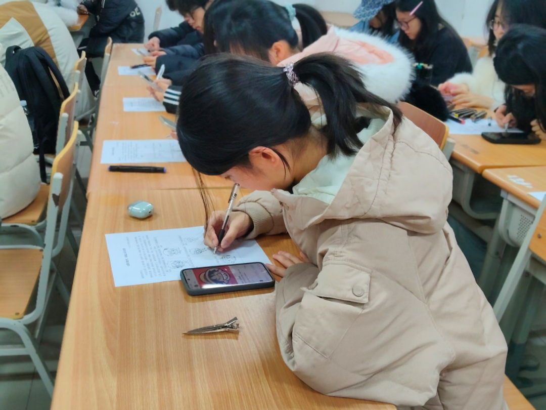 本次活动以绘画为核心载体,采用九宫格主题创作的形式组织开展。活动现场,负责人有序向参与学生分发九宫格画纸,画纸内设置了“最美的事物”“冬天的味道”“冬日植物”等九个具象化创作主题,覆盖视觉、触觉、味觉等多个感官维度,引导学生从不同角度感知生活。同学们结合自身日常学习生活体验与真实内心感受,以画笔为媒介,将日常学习生活中被忽略的温暖瞬间、细腻思绪转化为一幅幅画作。同学们在沉浸式创作的过程中沉下心来与自我对话,梳理情绪、放松身心,切实缓解了学业任务与日常生活带来的心理压力。