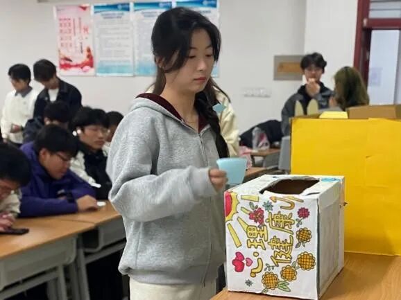 活动中,主讲人聚焦“情绪积极意义”与“日常心理压力解决方法”,用通俗案例拆解“书写情绪疏解焦虑”“主动倾诉获取支持”等实用技巧,让抽象的心理知识转化为贴合生活、可直接运用的实用智慧。学生们通过绘画、书写等艺术形式,将内心的喜怒哀乐创意封装进一个个独特的“心情盲盒”中。在匿名保障下,学生们随机交换彼此的心情盲盒,开启一场无声却深入的心灵对话。活动现场氛围温馨而专注,学生们在创作中梳理情绪,在交换中传递善意,在陌生人的笔触与色彩间收获共鸣与慰藉。参与此次活动的同学们纷纷表示,此次活动不仅帮助自己梳理情绪、掌握调节方法,更在互动中收获了情感共鸣与支持,切实提升了心理健康素养。
