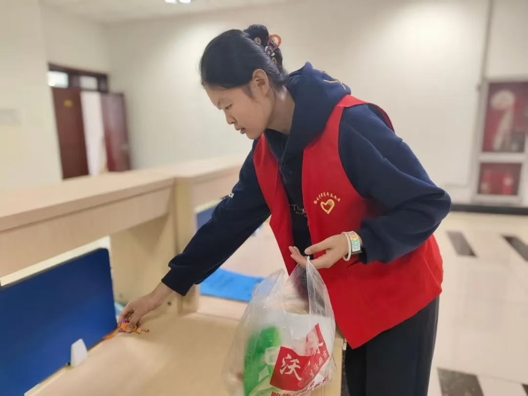 活动开始前,活动负责人向志愿者讲解了活动的清扫区域,并进行了分配任务,在明确了相关任务后,由负责人带领到相应的志愿岗位。志愿者们迅速进入工作状态,图书分类组的志愿者负责将图书分类归好,打扫卫生组的志愿者主要负责擦拭修读点内的桌柜和书架。随后,两组同学一起将书架上散落的图书归类整理并擦去上面的灰尘,小组之间相互配合、十分默契。在大家的共同努力下,修读点的环境质量得到了质的提升,呈现出整洁、有序、充满文化气息的全新面貌,为学院师生营造了更加优质的学习氛围。