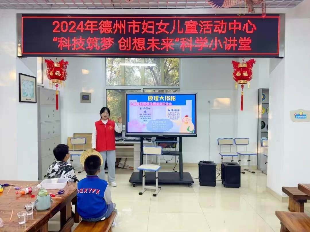 为进一步激发儿童崇尚科学、探索未知的兴趣,营造全环境立德树人的社会氛围,11月2日,物电学院“星光”科普志愿服务队24工程本三团支部在妇女儿童活动中心开展“科技梦想,筑梦飞翔”科学小讲堂活动。