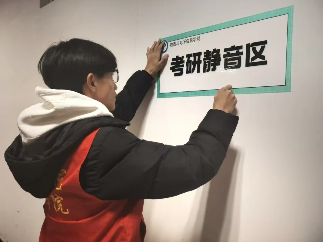为给考研学子营造安静的学习空间和舒适的休息备考环境,提高他们的学习动力和热情,以实际行动为考研学子提供支持,物电学院在明理楼开展了“静音守护,助力考研”活动。